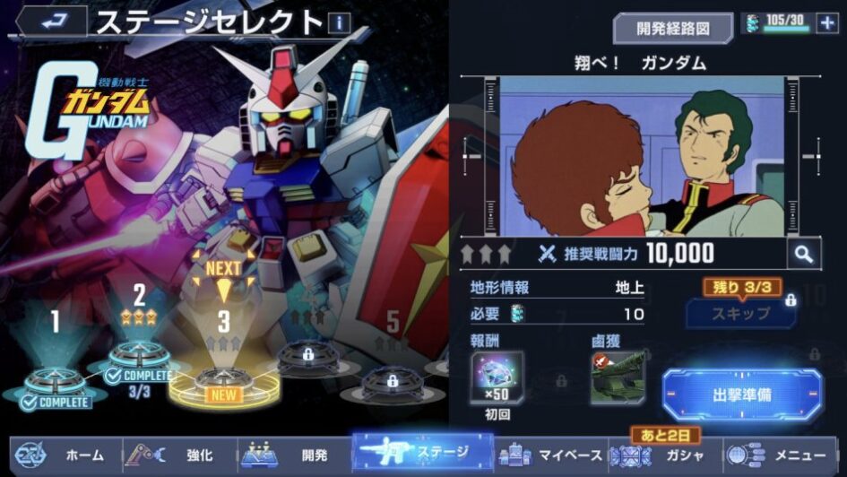 メインストーリーは最初は「機動戦士ガンダム(初代)」しか遊べませんが、「機動戦士ガンダムSEED」「機動戦士ガンダム 水星の魔女」など、リリース当初で10作品が搭載。