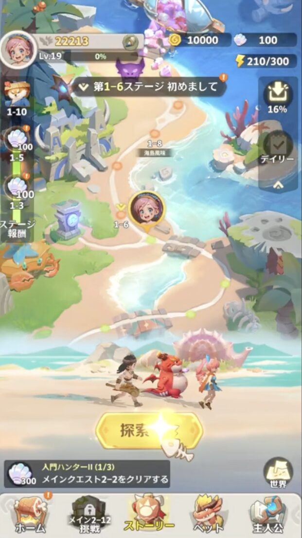 一定数のステージをクリアすると各種冒険コンテンツが増えていき、キャラクター育成やスキル調整の戦略性もありました。